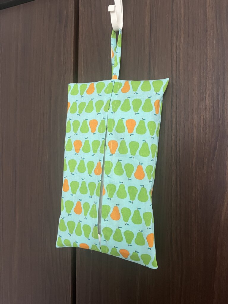 部屋の机の配置や物が邪魔でアイロンをかけたりミシンをかけるのもやりづらくて吊り下げられるティッシュケースを作り机の上から排除