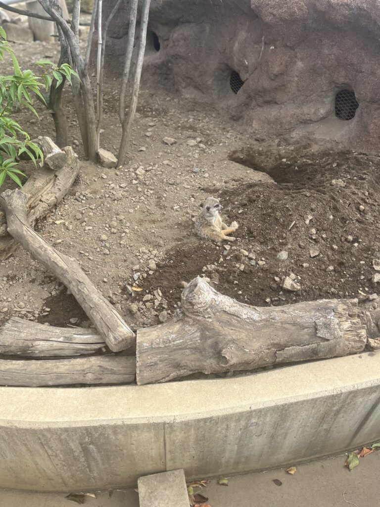 こじんまりとした遊園地でどうぶつ広場もあり可愛いミーアキャット(変な座り方してた🤭)