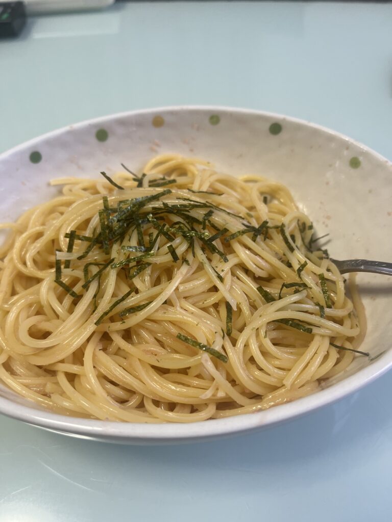 お昼はたらこパスタ