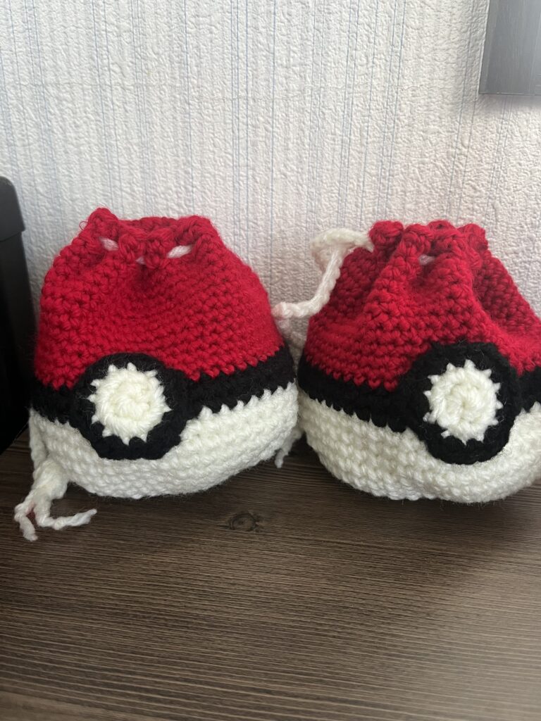昨日編んだモンスターボールの巾着を少し修正しました。