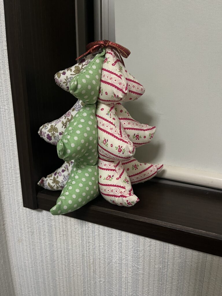 片付けをしてたらいつだいぶ昔に作った布のツリーが出てきました